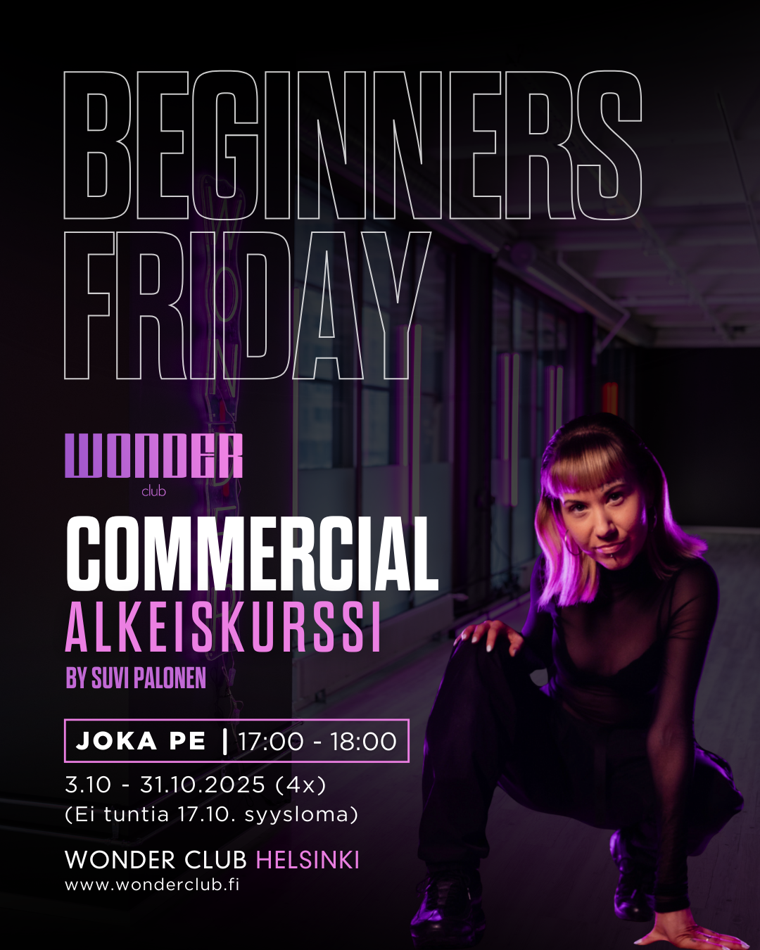 Kurssi on suunnattu tĂ€ysin vasta-alkajille. Tunnilla opetellaan perusteet rauhassa â et tarvitse aiempaa tanssikokemusta.