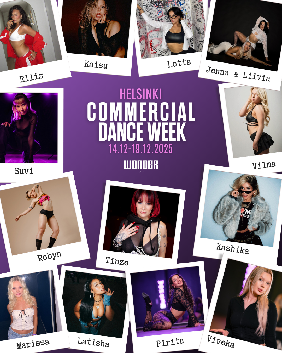 Tunnilla opetellaan commercialin perusteita: rytmiä, linjauksia ja liikkeen virtaavuutta. Painotus on perustekniikassa ja rohkeassa heittäytymisessä – saat hyvän pohjan siirtyä alkeisjatkotasolle. Tunti sopii kaikille, jotka haluavat aloittaa commercialin maailmaan tutustumisen rennosti ja kannustavasti.
